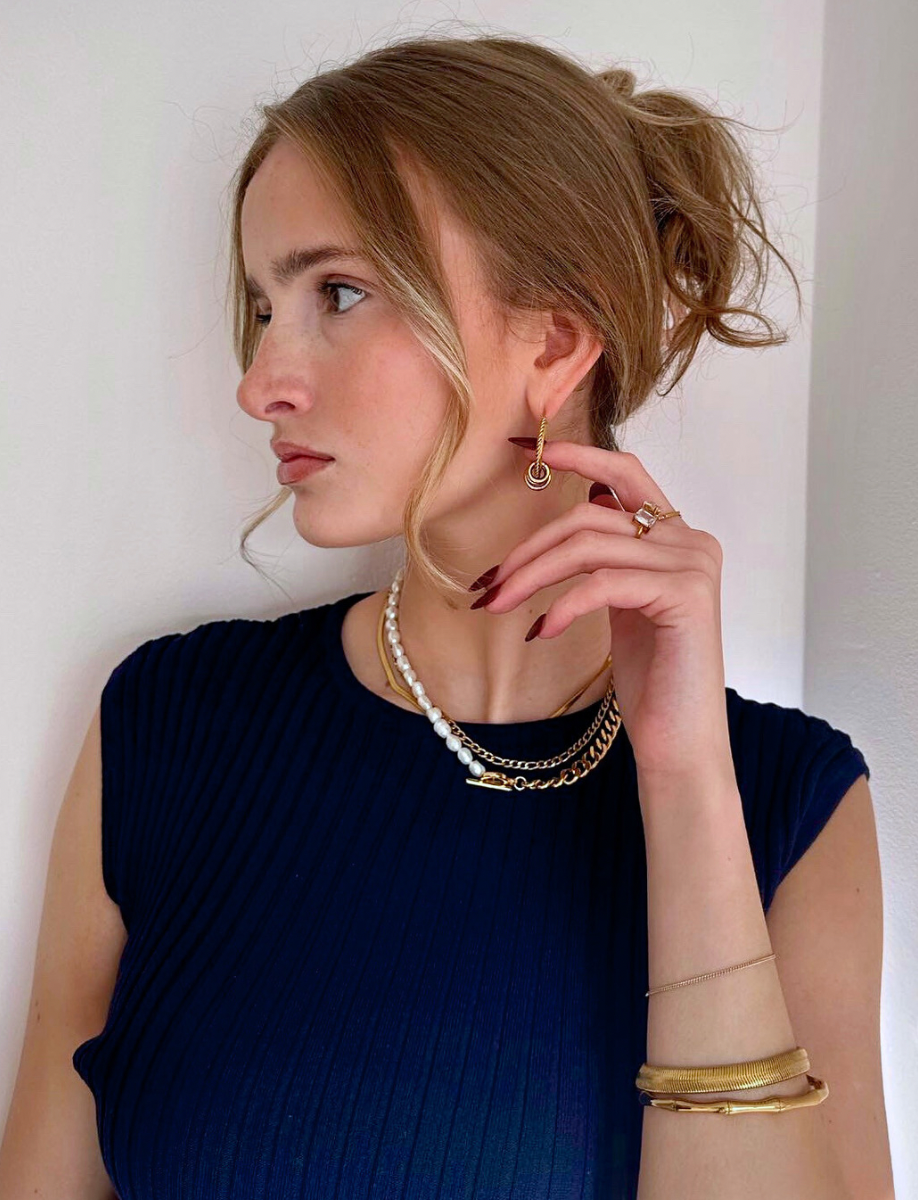 Elevate your everyday look with Alissa stud earrings. Crafted from 18k PVD plated stainless steel, these dainty droplet earrings offer a unique and stylish touch. With their waterproof and hypoallergenic qualities, they are both practical and beautiful. Say goodbye to tarnishing and hello to effortless elegance!