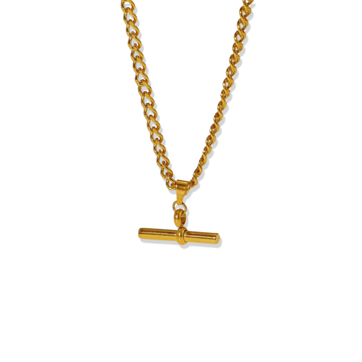 This luxurious T-bar necklace is the perfect addition to your jewellery collection. Made with 18k gold PVD plating, it is waterproof and tarnish-free, ensuring long-lasting wear. The hypoallergenic cuban chain adds elegance, while the t-bar pendant adds a unique touch. Upgrade your style with this stunning necklace!