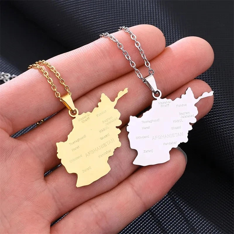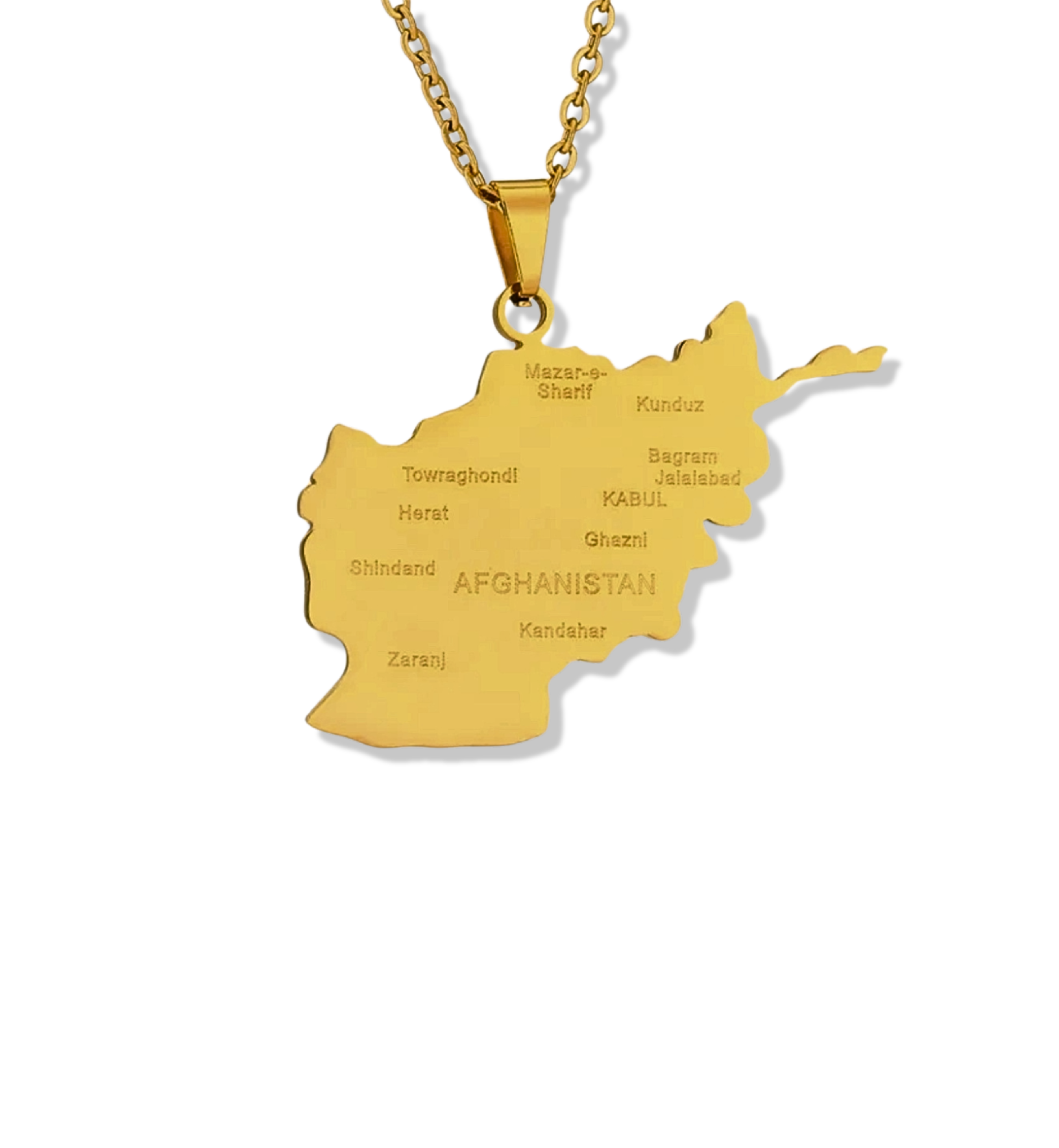 Show off your love for Afghanistan with our 18K PVD gold plated necklace! Made of stainless steel, it's waterproof, tarnish free, and hypoallergenic. The thin chain and intricate map pendant make it a perfect accessory for any outfit. Show your pride and style with this stunning necklace.
