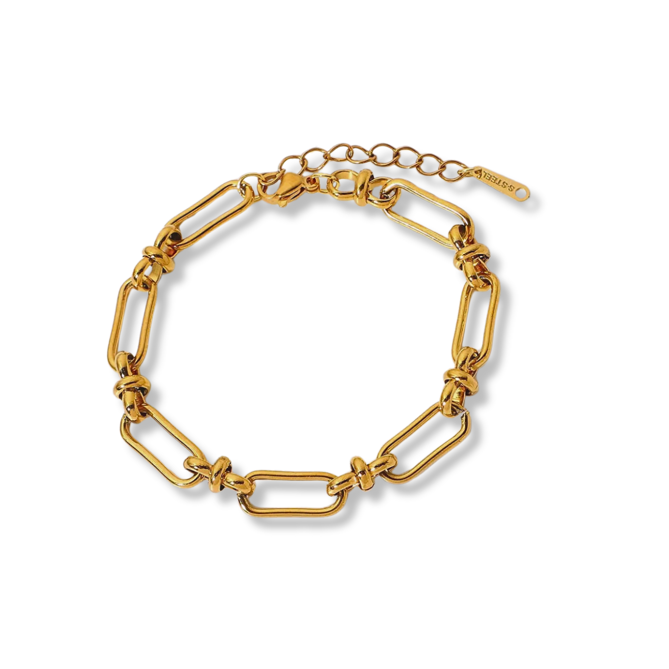 Elevate your style with the Camryn bracelet. This 18k gold plated stainless steel bracelet features a chunky wide link design, perfect for adding a touch of luxury to any outfit. With its adjustable size, waterproof and hypoallergenic properties, this bracelet is both versatile and enduring.