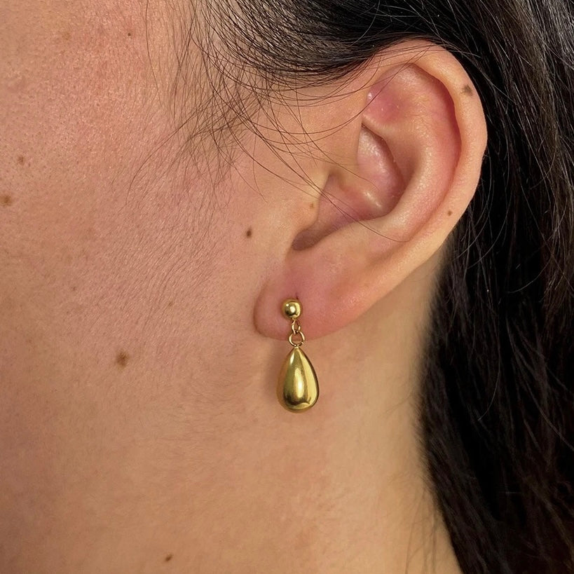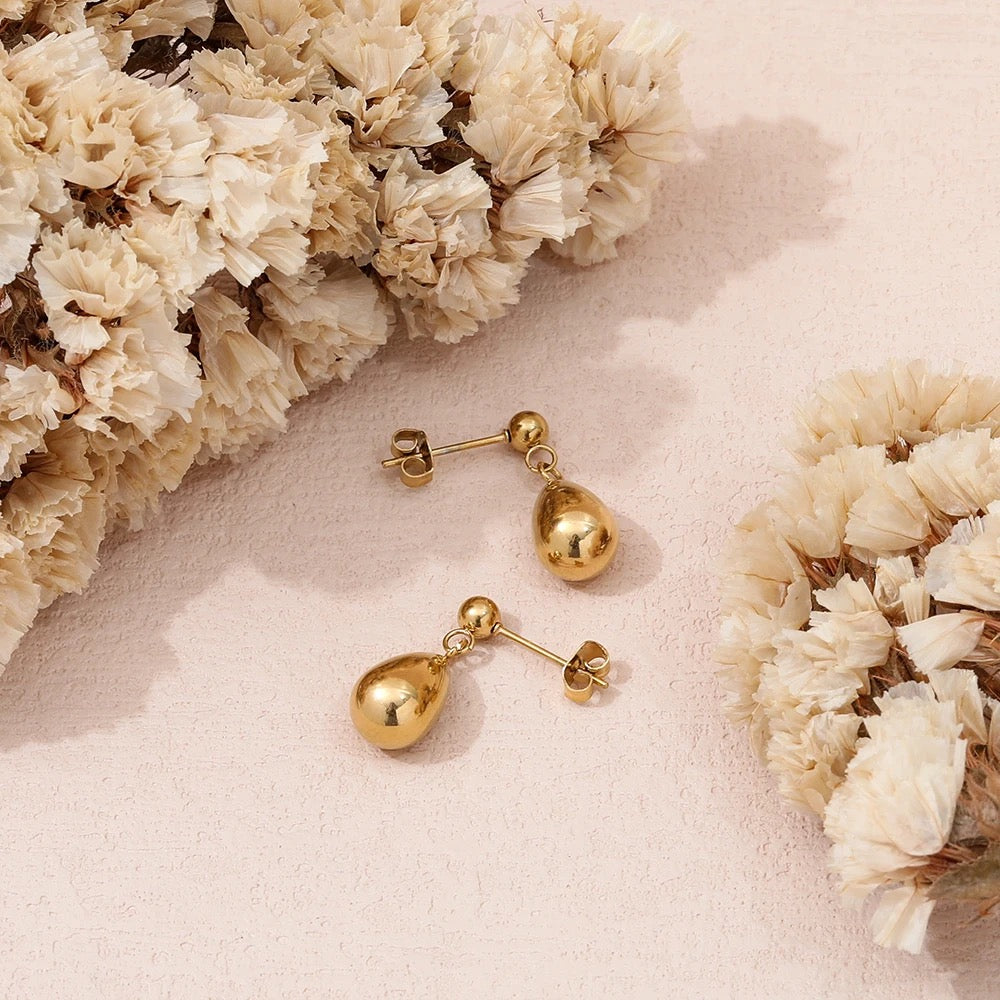 Elevate your everyday look with Alissa stud earrings. Crafted from 18k PVD plated stainless steel, these dainty droplet earrings offer a unique and stylish touch. With their waterproof and hypoallergenic qualities, they are both practical and beautiful. Say goodbye to tarnishing and hello to effortless elegance!