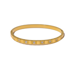 Indulge in pure luxury with our CZ bangle. Crafted in 18k gold plated stainless steel, this stunning piece features sparkling square cubic zirconia stones along the top. Not only is it waterproof and tarnish free, but it's also hypoallergenic for your utmost comfort. Elevate your style with this exclusive bangle.