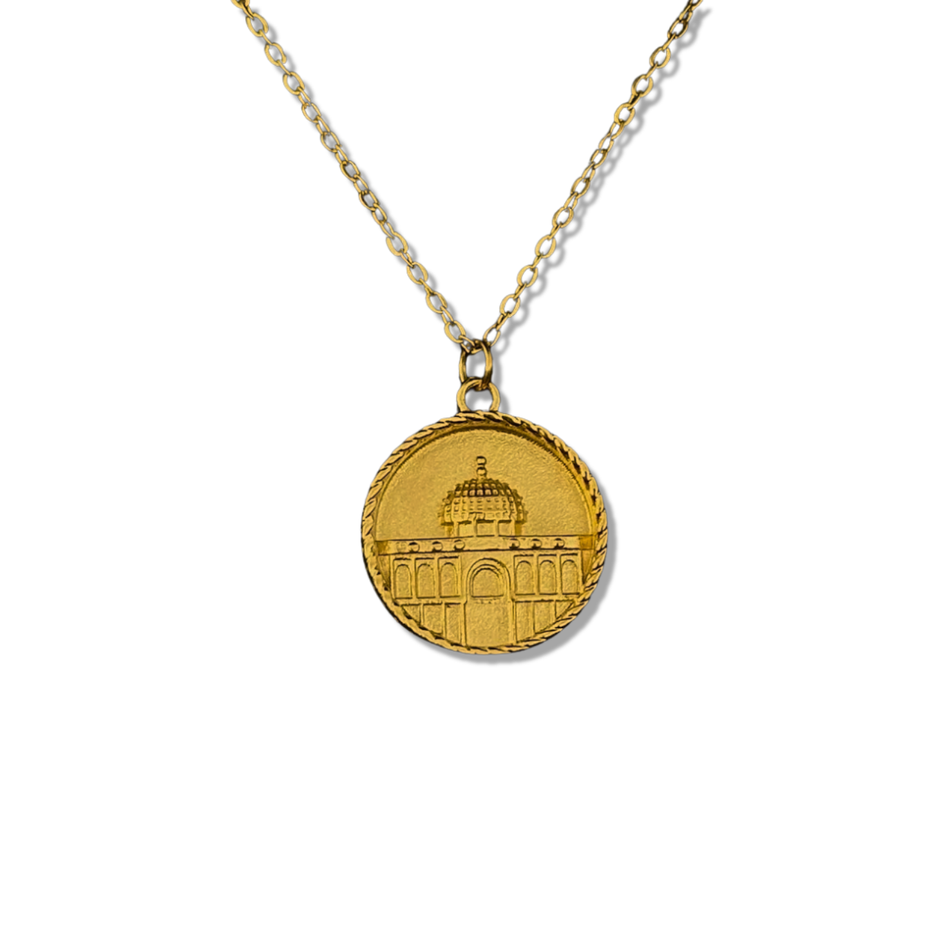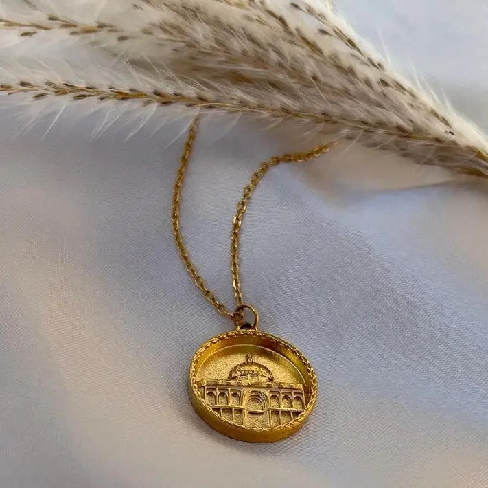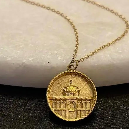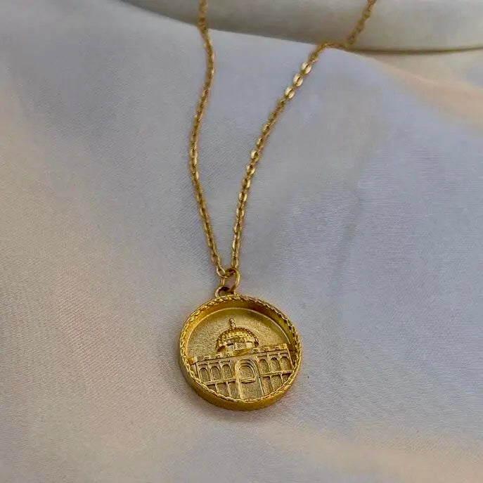 Expertly crafted and designed, this Dome of the Rock necklace showcases a pendant made of 18k gold PVD plated stainless steel. Paired with a customizable chain, it offers durability, water resistance, and hypoallergenic qualities.