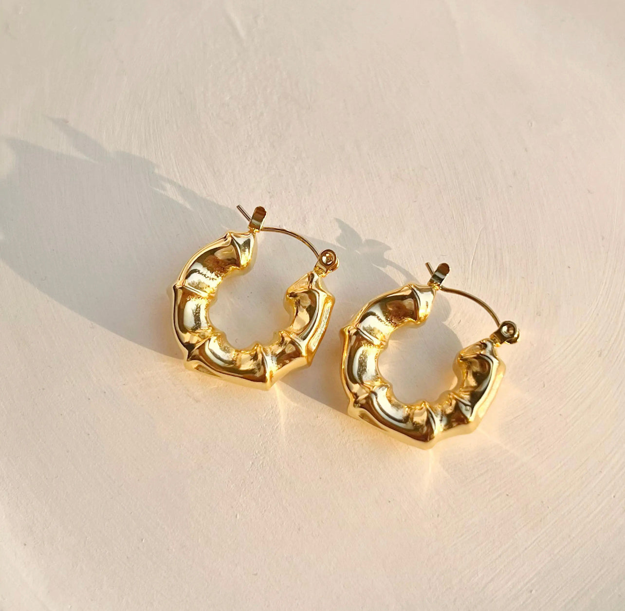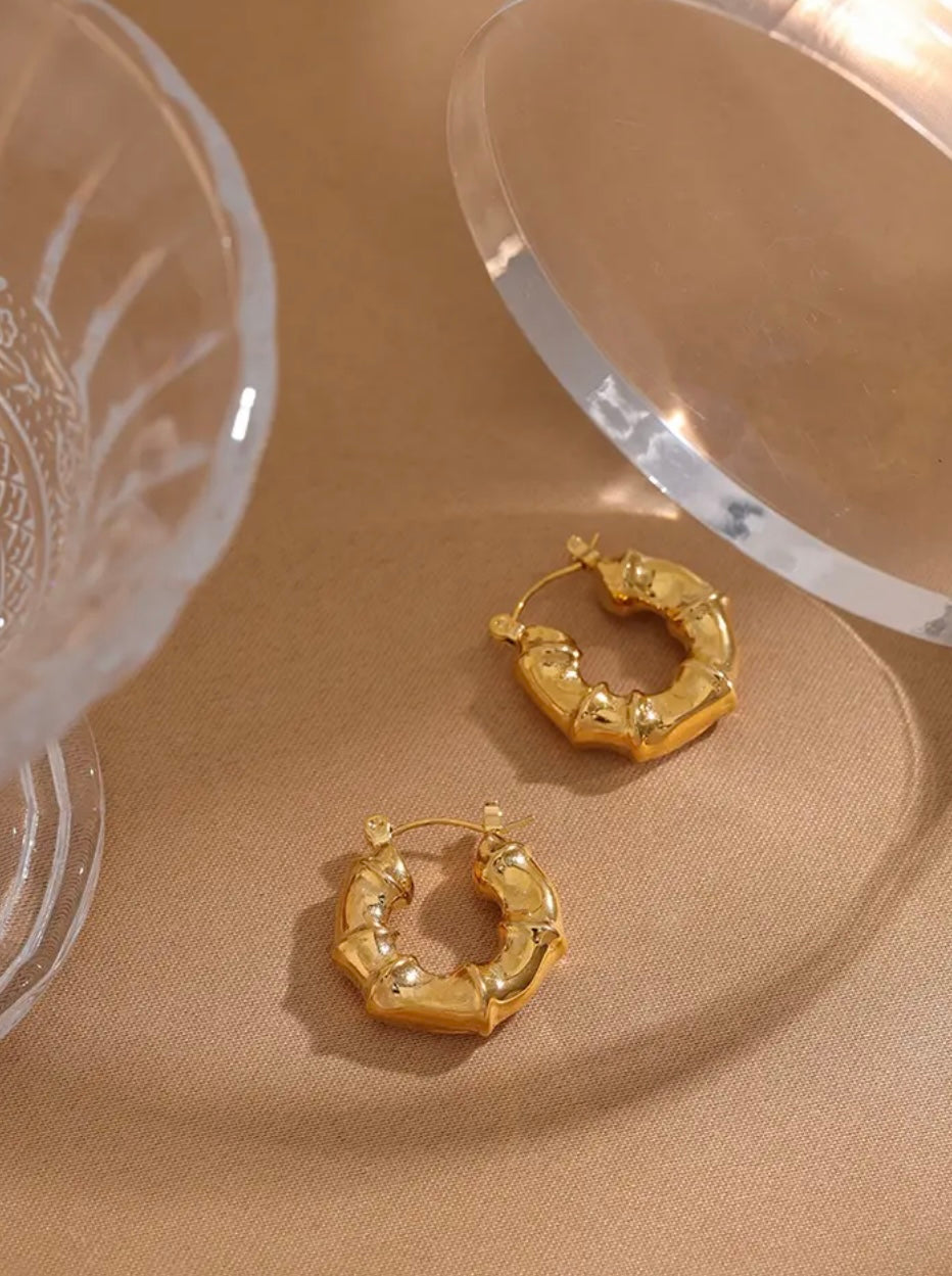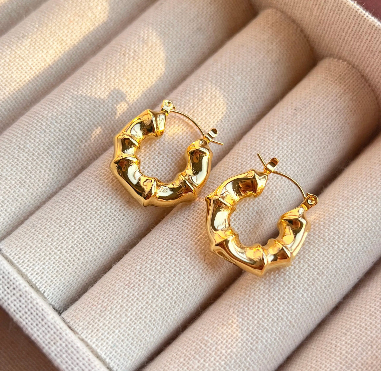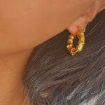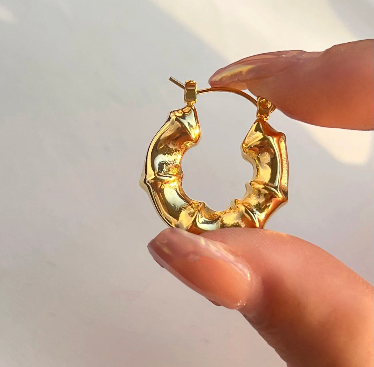 Featuring a stunning textured bamboo design, these earrings add a touch of nature-inspired beauty to any outfit. The intricate detailing of the bamboo is expertly captured, creating a beautiful and eye-catching effect.