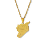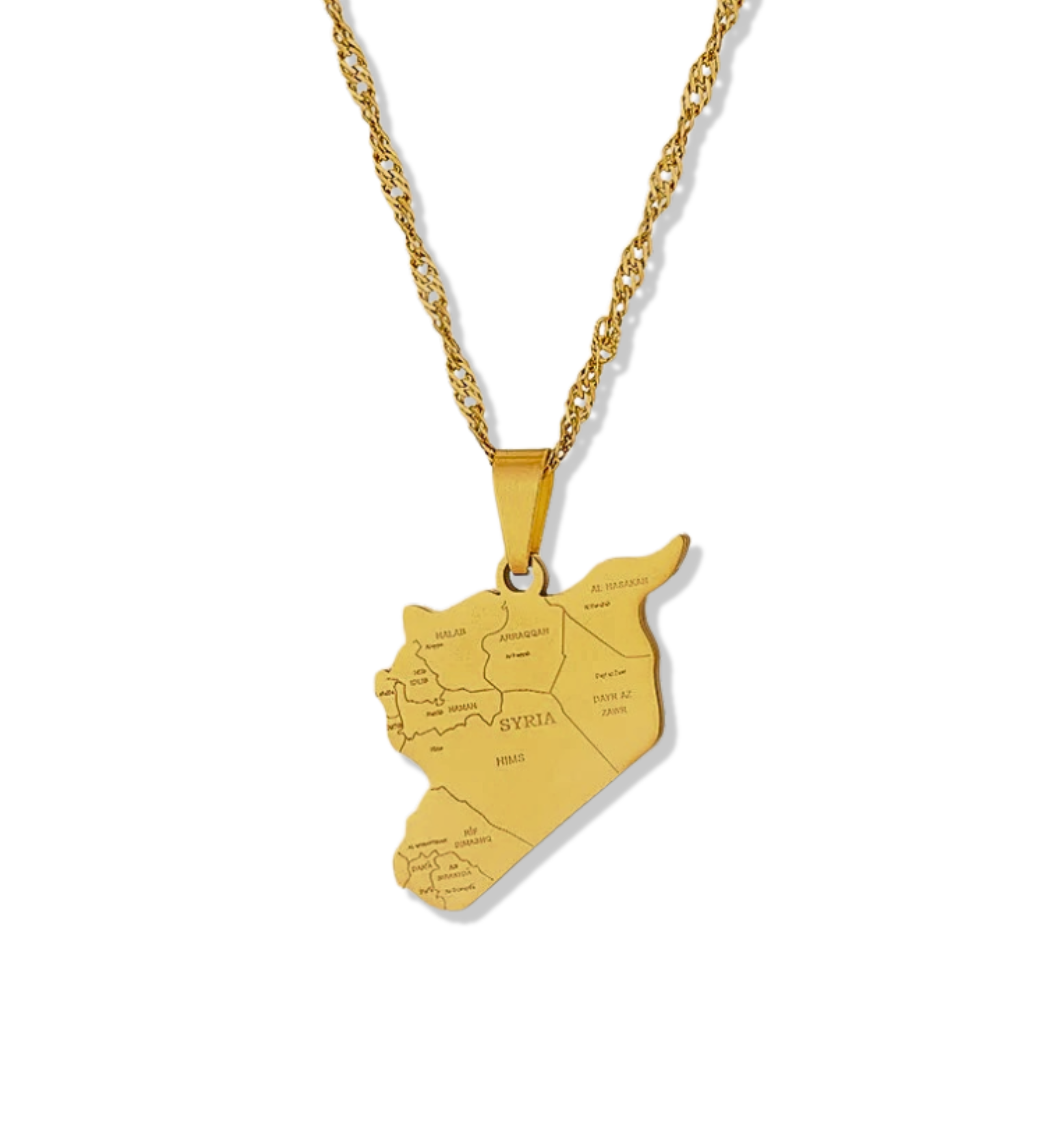 Show off your love for Syria with our 18K PVD gold plated necklace! Made of stainless steel, it's waterproof, tarnish free, and hypoallergenic. The thin chain and intricate map pendant make it a perfect accessory for any outfit. Show your pride and style with this stunning necklace.